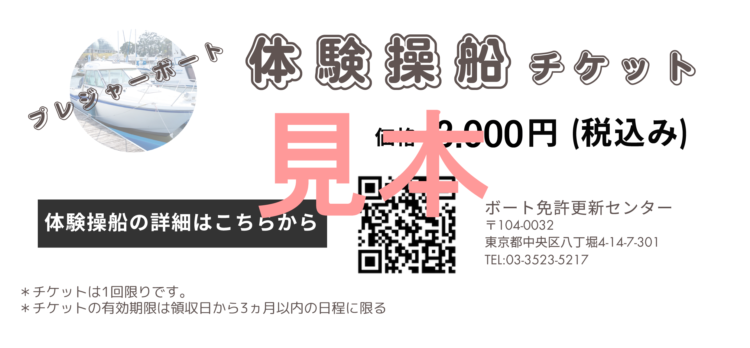 受講しますと全員に「体験操船チケット」を差し上げます。